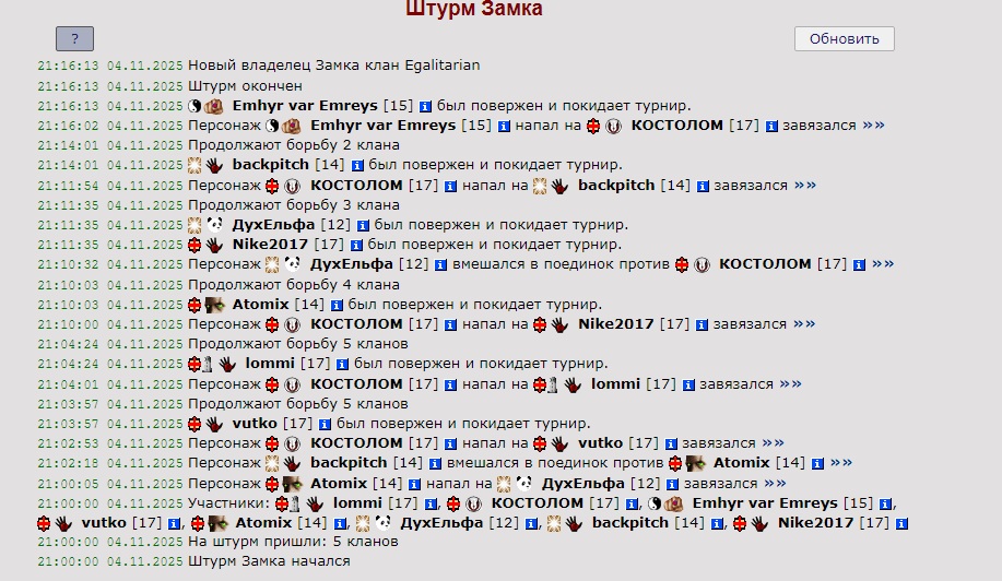 Легко *положить* КЛАН , если нет сопротивления. Не всегда есть возможность быть в игре в определенноге время, но при этом , данный топ создан в целях понимания, что игроки НЕ победили в равной борьбе других игроков, просто ладохи НЕ играли, хоть и находились на замке.