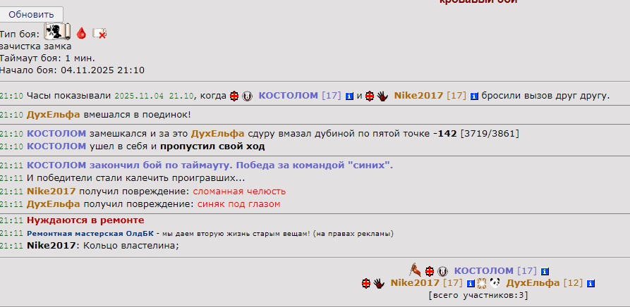 11:25 Ilya_Poplavsky невидимка получил неличимая травма повреждение: сильное внутреннее кровотечение (самокат 4) https://oldbk.game/battle/log.php?action=page&id=147142080